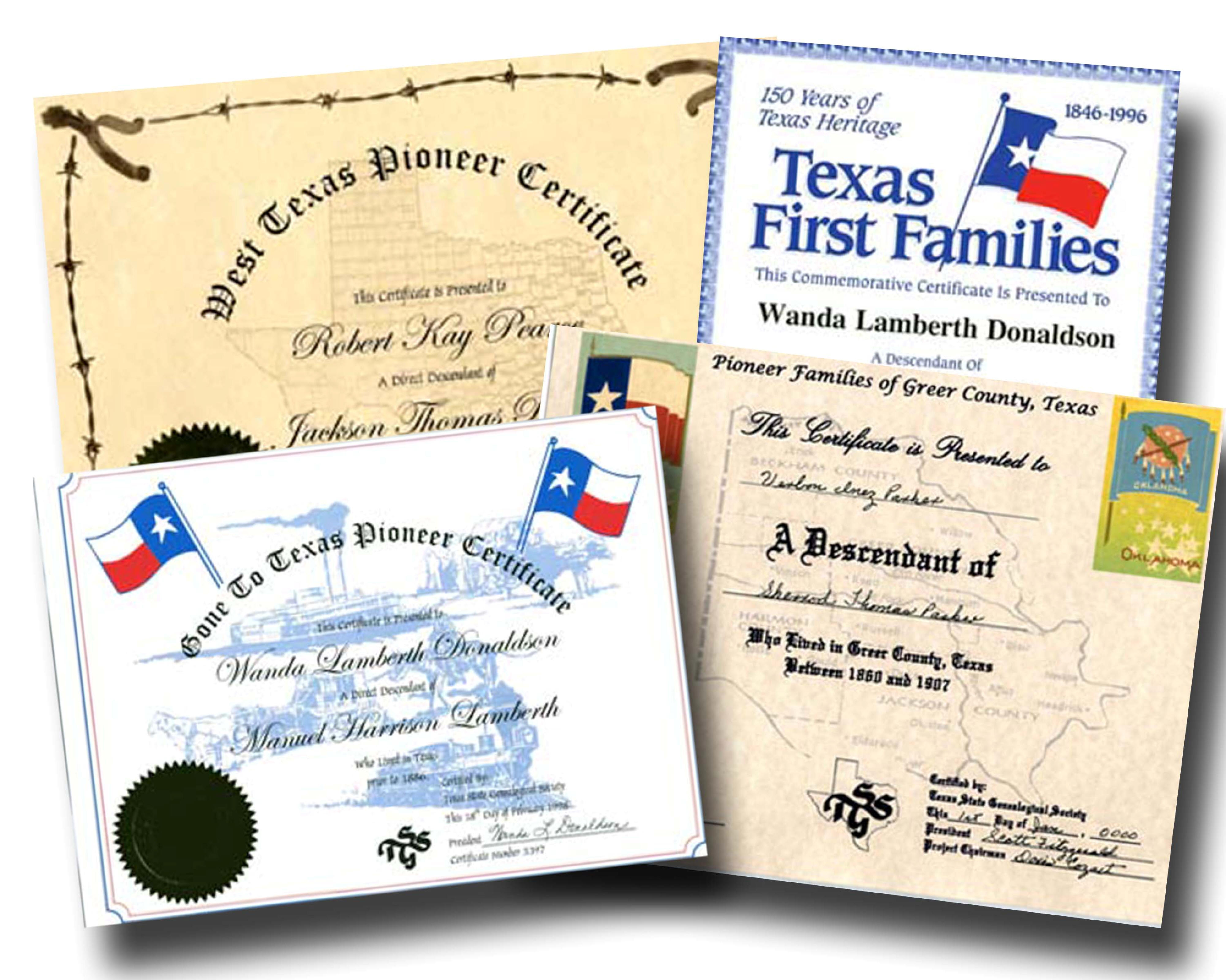 TxSGS offers the following certificate programs for those with pioneers and those with notable service to Texas in their lineage: