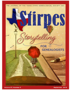 The September 2018 issue of Stirpes focuses on storytelling, with great articles on a variety of aspects from techniques to examples. It is packed with research articles, partner society and TxSGS news, details about the upcoming TxSGS 2018 Family History Conference in San Antonio (November 2-4), and more.