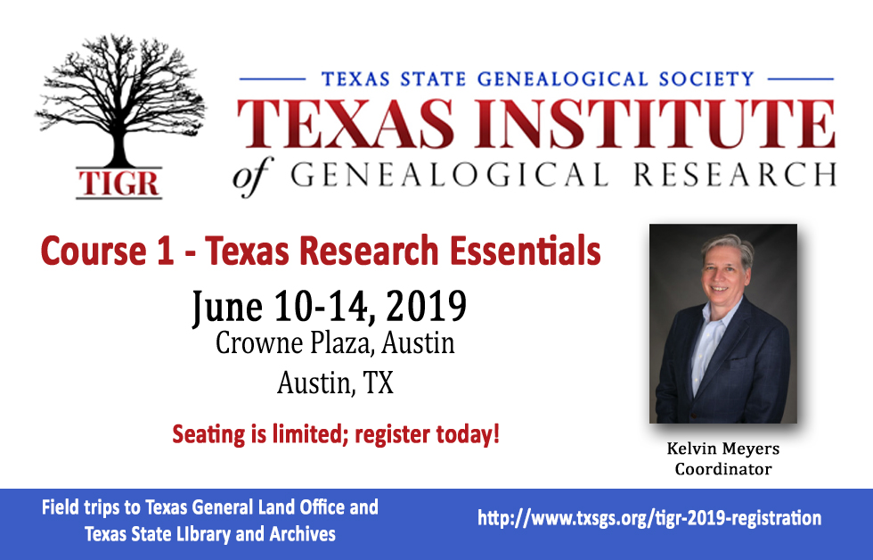 Plus: Field Trips to the Texas General Land Office and Texas State Library and Archives (space for these is limited; must register when you register for the course).