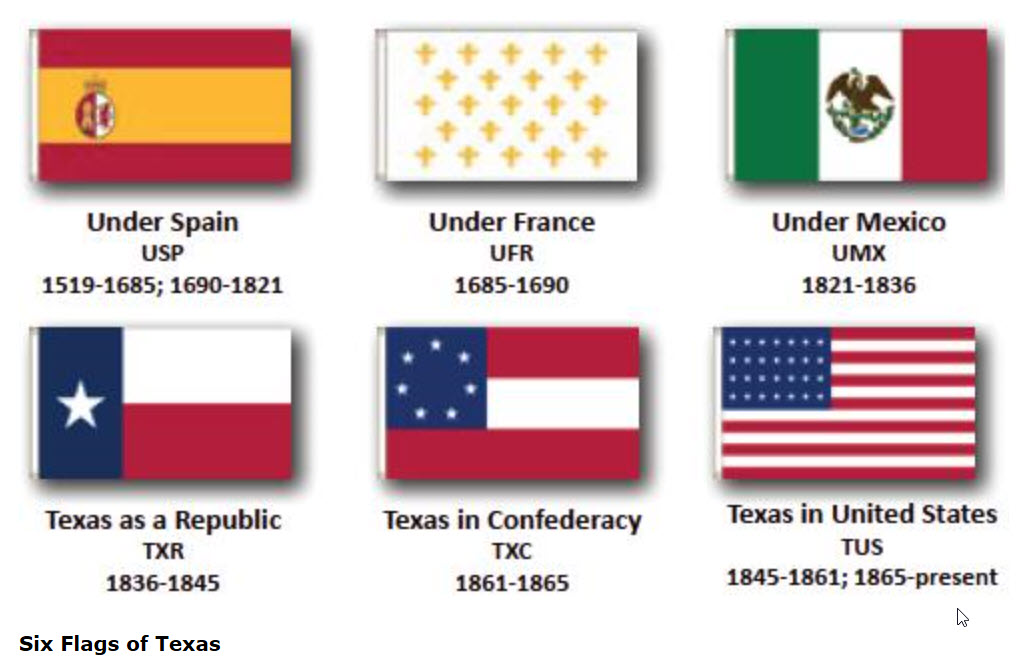 “Texas history is both diverse and unique. Texas is the only state in the United States that has been an independent nation. It has existed under six different governments and flags!”