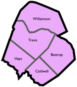 Bastrop, Caldwell, Hays, Travis, Williamson
