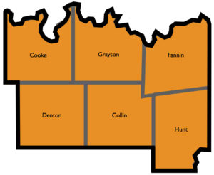 Collin, Cooke, Denton, Fannin, Grayson, Hunt