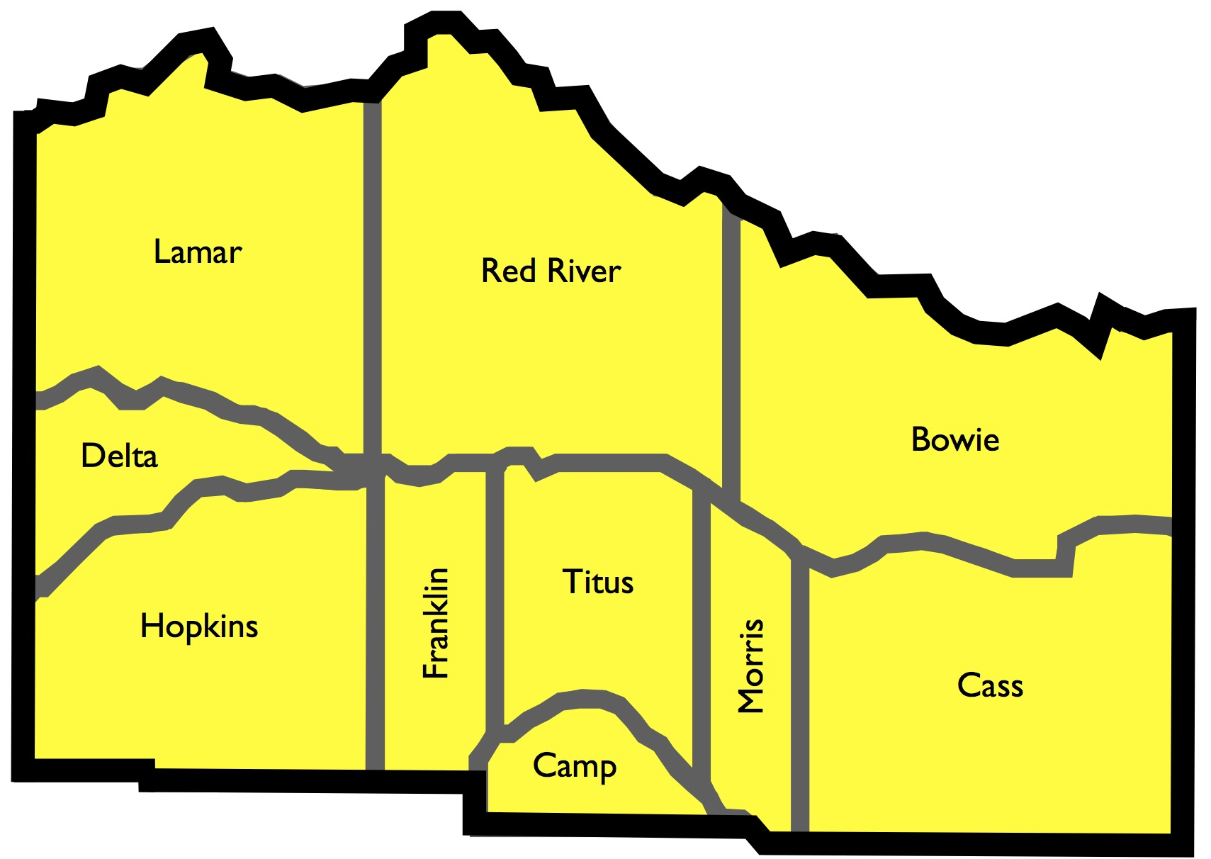 Bowie, Camp, Cass, Delta, Franklin, Hopkins, Lamar, Morris, Red River, Titus