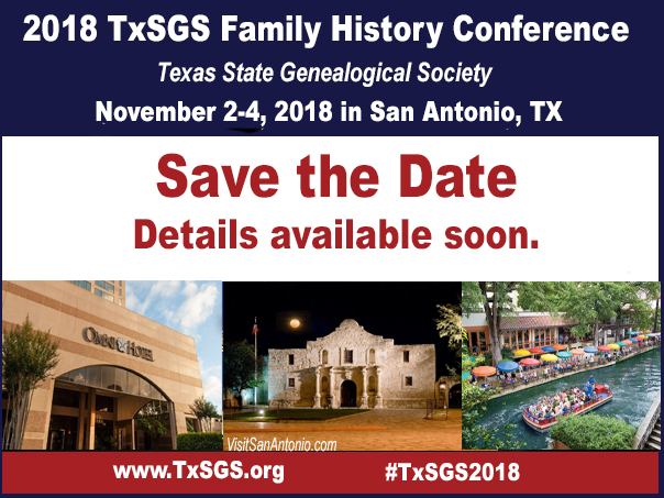 The three-day TxSGS 2018 Family History Conference is a great opportunity for family historians to advance their research, hone their skills, and network with fellow genealogists. Be sure to reserve your hotel accommodations as soon as possible.
