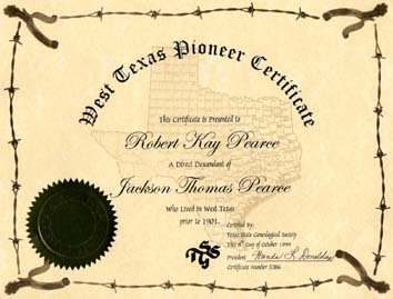 List of qualifying counties for the West Texas Pioneer Certificate:
